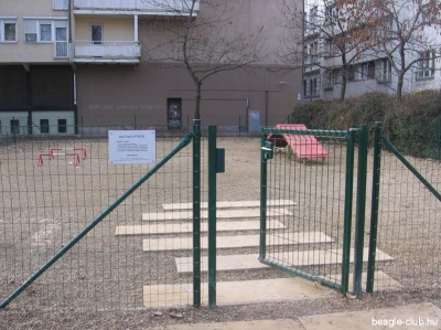 A kutyafuttató mellett körülkerített játszótér és focipálya is található.
