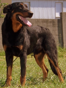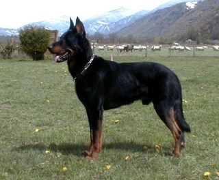 Kinézetben, színeiben a dobermannhoz hasonlít, de nála erőteljesebb testfelépítésű. Háta egyenes, mellkasa mély, hasa felhúzott. Lábai masszívak, farka lelóg. Feje is dobermann-szerű, de annál masszívabb. Fülét hegyesre csonkolják, szem barna. Rövid szőre fekete, cserbarna rajzolattal, harlekin, vagy fekete foltos.